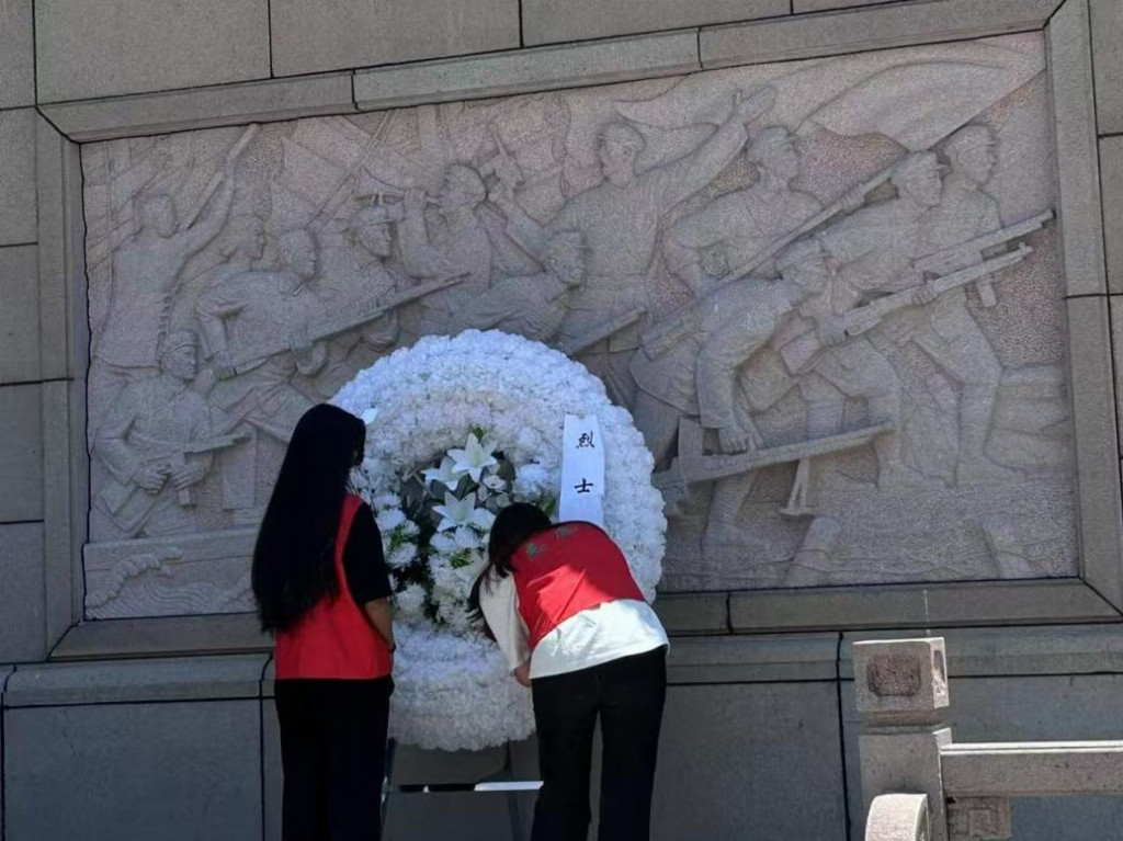 参观后,实践团前往苏州烈士陵园。苍松翠柏掩映中,烈士纪念碑巍然矗立。成员们手捧鲜花,缓步列队走向纪念碑,敬献花篮、鞠躬默哀,每一个动作都饱含对英烈的深切敬意。讲解员说“这些烈士平均年龄不到30岁,却用热血筑牢今天的和平根基,后辈永不能忘记这份厚重。”